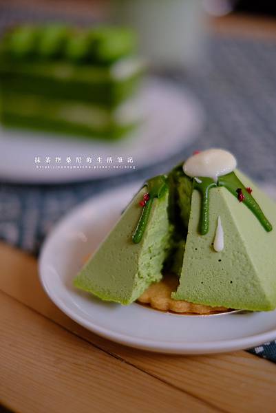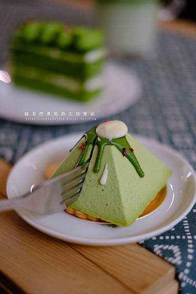 這款是青田甜作的新品,當初桑尼就是被這款綠色經字塔造型的抹茶甜點吸引,在假日時邀同為抹茶控的友人一同造訪青田甜作。